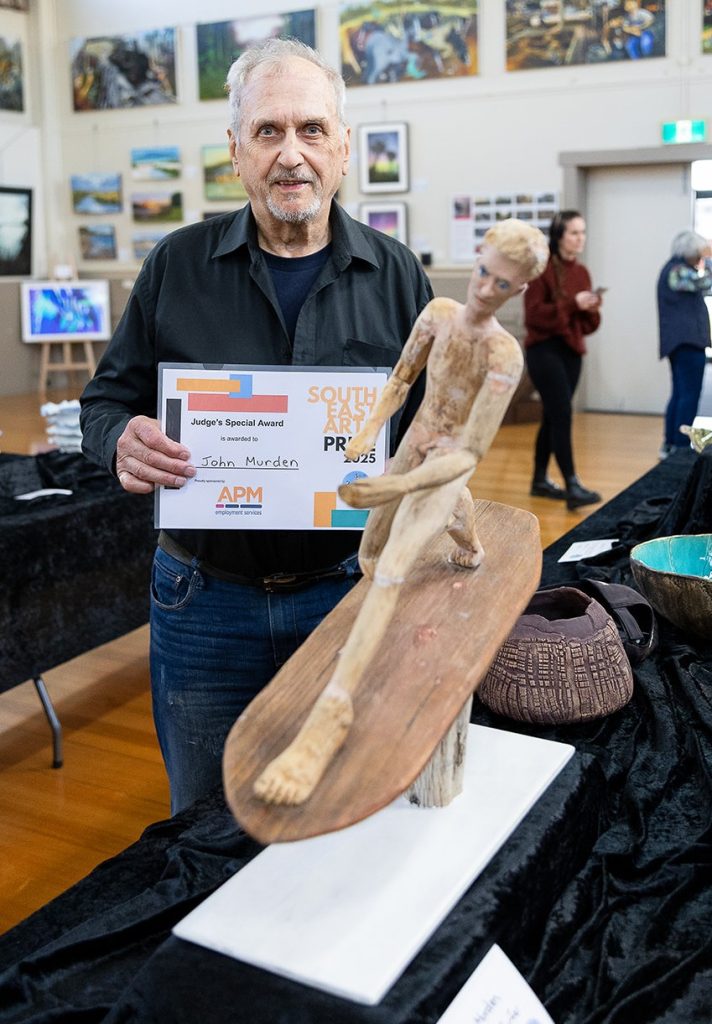 Judge’s Special Award – John Murden with his sculpture titled “Driftwood Surfer.”