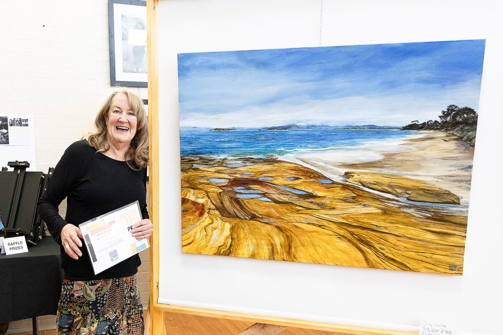 Sorell Council Acquisitive Prize – Lily Dunlop with her painting “Red Ochre Beach August 30 2025.”